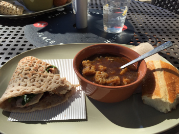 We stopped early afternoon and had lunch at one of the restaurants at the Museum, The American Sector. We had really good food there, Tim had a burger and I had an orzo with grilled chicken dish.
