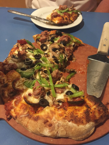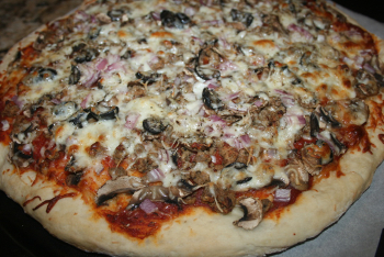 Ultimate pizza for Tim (NO green peppers for me, ick!):