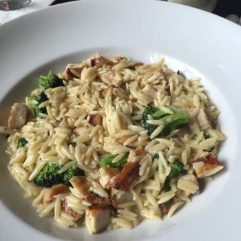 And my delicious orzo with grilled chicken and roasted broccoli: