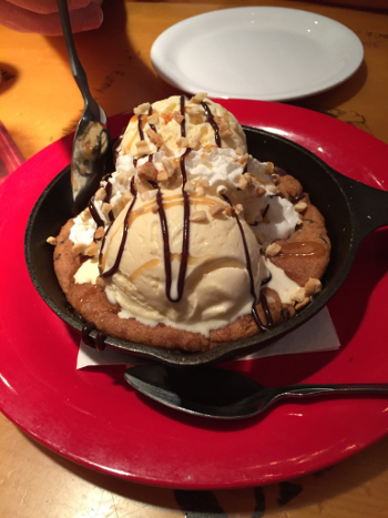 And dessert at Bubba Gump, chocolate chip cookie skillet with ice cream: