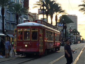 Wandering around the French Quarter, dodging the trolleys. I love the trolley!