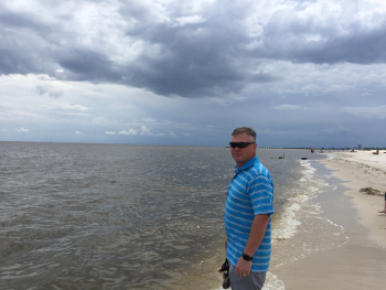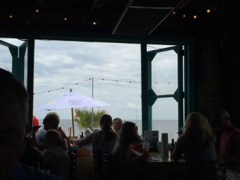 We booked a room for two nights in New Orleans, but drove down Saturday morning late to the MS Gulf Coast. We had eaten years ago at a restaurant we loved called Shaggy’s. Come to find out, there’s now several of them (3 or 4, I think!). Years ago, we apparently went to the original one that they built after Hurricane Katrina, down in Pass Christian. This time, we picked the one on the beach in Biloxi (so we actually drove right by the Shaggy’s in Gulfport, which is across Beach Boulevard, in order to eat *on* the beach!). We had a late lunch and probably the best food of our trip. We didn’t make great choices in New Orleans, so this was my pick for food on our short trip. We were late getting there, so of course, we were both starving! Tim ordered an appetizer, fried crawfish tails with remoulade sauce, and of course, we scarfed them all down! By the time we ate those and I had finished my salad, I was stuffed! I had the crab cakes and Tim had the catch of the day, which was redfish. I tasted his and it was equally as good as mine, if not better.