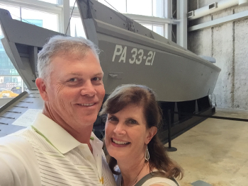 Luckily, we had bought tickets online, since the Will Call line only had 3-4 people in it, and the main ticket line snaked all the way through their barriers! First up, we watched the Tom Hanks narrated 4D movie, “Beyond All Boundaries”. Tim chose “Road to Berlin” first, which is the war in Europe. Then we did “The Road to Tokyo” about the war in the Pacific. There were several new things since we had been, and another building under construction. The New Orleans Marine Corp band was there in the Boeing Freedom Center playing around lunchtime. We had a great time going through the whole museum and checking everything out. We’re both such history buffs that this is right up our alley.